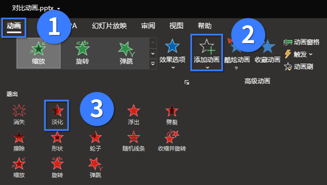 此时你就能在【动画窗格】中看到这个小圆形同时具备了【缩放出现】以及【淡化消失】两个动画: