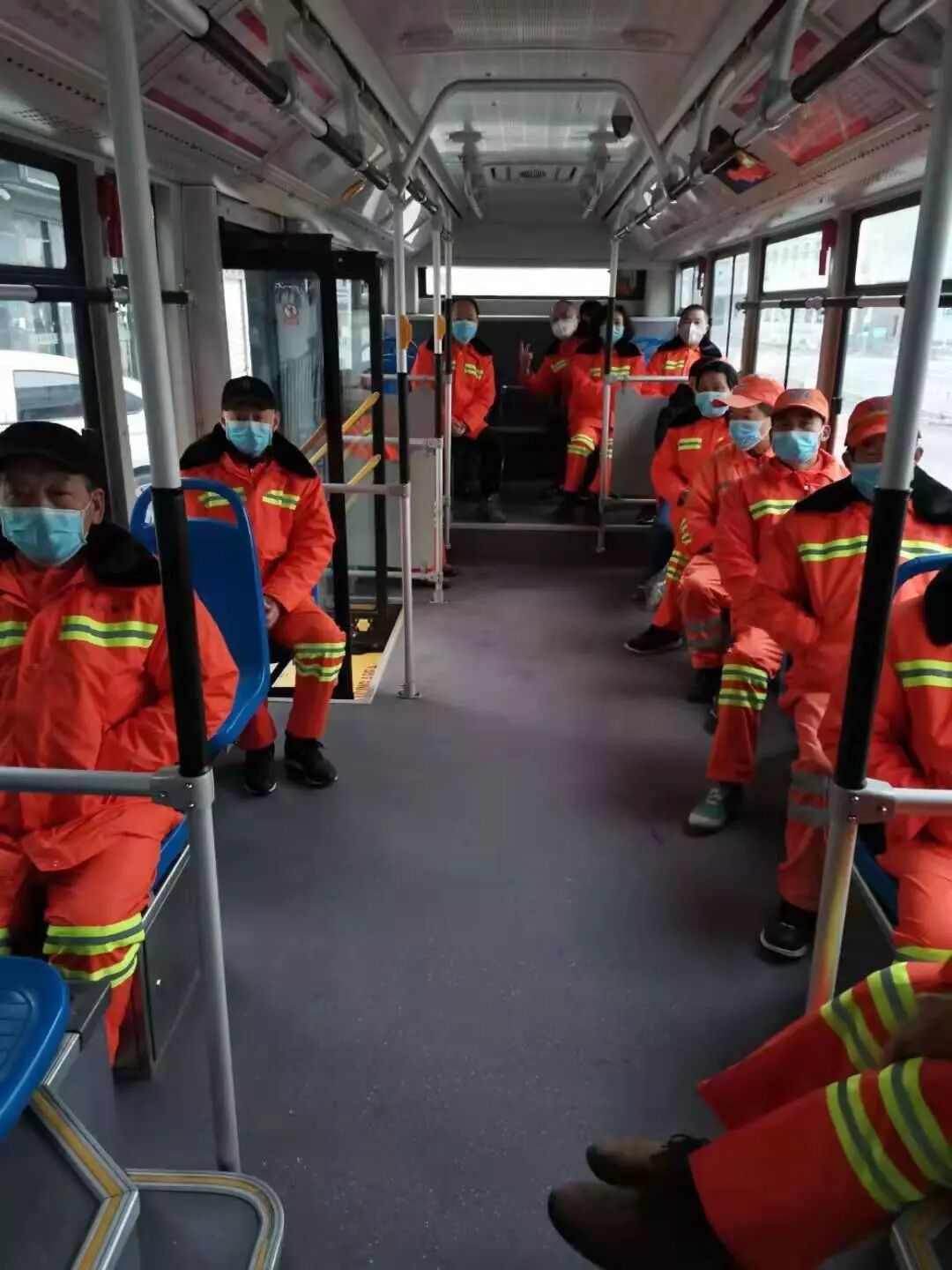 城管局安排专车,每日接送环卫工上下班。受访者供图