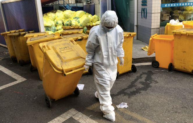 接受完防护培训,她和十几名同事被派往武汉市红十字会医院,当天夜里便清理出100多桶垃圾。医院的人透露,由于缺少保洁,那些垃圾已经堆了三四天未处理。