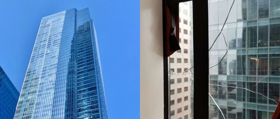 ❒沿街玻璃裂开,带着加速度的玻璃如果从天而降,行人怕是生命难保。而一旦飓风等特殊情况发生,后果更加不堪设想。