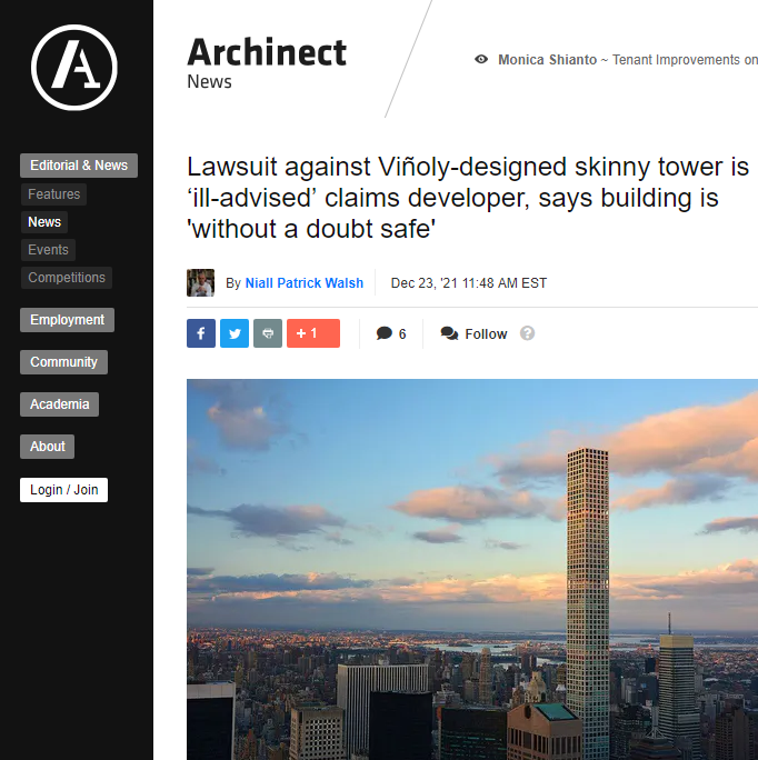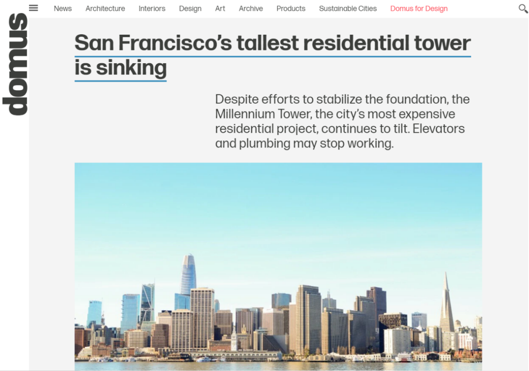 https://www.theguardian.com/us-news/2022/jan/10/san-francisco-millennium-tower-sinkinghttps://archinect.com/news/article/150294043/san-francisco-s-infamous-millennium-tower-is-stillsinking-and-it-may-be-running-out-of-timehttps://archinect.com/news/article/150156111/settlement-reached-for-sinking-millennium-tower-in-san-franciscohttps://archinect.com/news/article/150279448/work-on-san-francisco-s-millennium-tower-repair-halted-after-further-sinking-discoveredhttps://www.republicworld.com/world-news/us-news/us-san-franciscos-sinking-millennium-tower-leaves-residents-worried-lawsuits-filed-articleshow.htmlhttps://archinect.com/news/article/150291967/lawsuit-against-vi-oly-designed-skinny-tower-is-ill-advised-claims-developer-says-building-is-without-a-doubt-safehttps://archinect.com/news/article/150282640/residents-of-nyc-s-432-park-avenue-are-suing-the-developers-for-125-million-in-damages©San Francisco Department of Building Inspection© Victor Grigas/Wikimedia Commons©Wikimedia user Frank Schulenburg©Wikimedia Commons user Dead.rabbit ©Michael Gimbel© dbox for CIM Group and Macklowe Properties ©Tony Cenicola/The New York Times© Epistola8/Wikimedia Commons©Maciek Lulko/Flickr (CC BY-NC 2.0)©Epistola8/Wikimedia Commons![]()