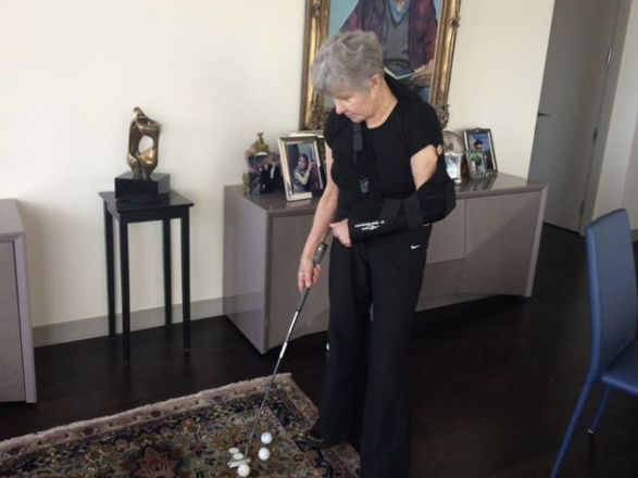 ❒一个高尔夫球在公寓地板上可以自由地来回滚动。