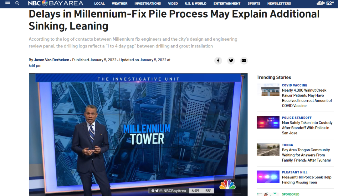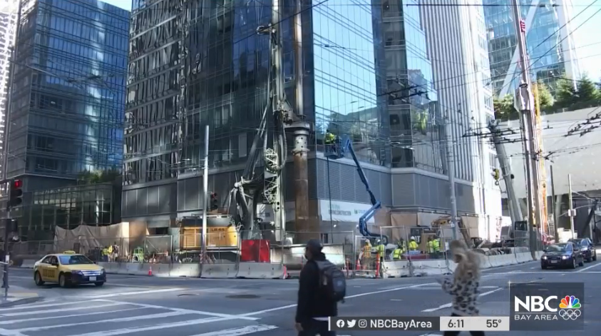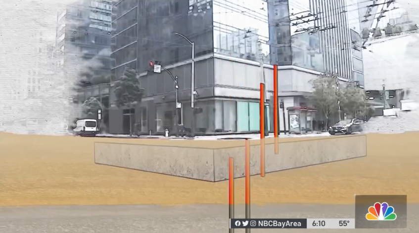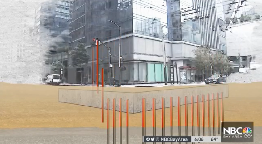 此外,湾区交通枢纽项目TTC基坑开挖深度达55英尺(16.7米),最近处与千禧大厦紧紧相贴。该项目基坑开挖深,而且坑底刚好是千禧大厦塔楼预制桩的持力砂层。环湾运输管理局为了保证干燥的施工环境,抽取了数百万加仑的地下水,破坏了千禧大厦地下的土壤。