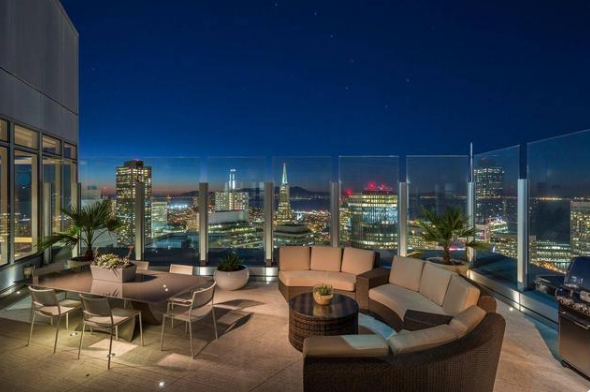 这栋58层的旧金山地标建筑,曾是美国密西西比河以西最高的住宅。顶楼的豪华套房可以 360 度环顾旧金山市区。住客拉开窗帘,著名的金门大桥近在咫尺,整个城市的天际线也尽收眼底。这套公寓至今保持着“旧金山市最贵两居室”的纪录。在 2015 年,该顶楼公寓卖出了 945 万美元的天价,甚至连物业费也高达 2.3 万美元一年。
