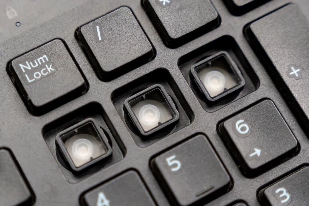 咱们日常常用的薄膜键盘,键帽下面是橡胶帽,每次按下的触感千篇一律,软趴趴。