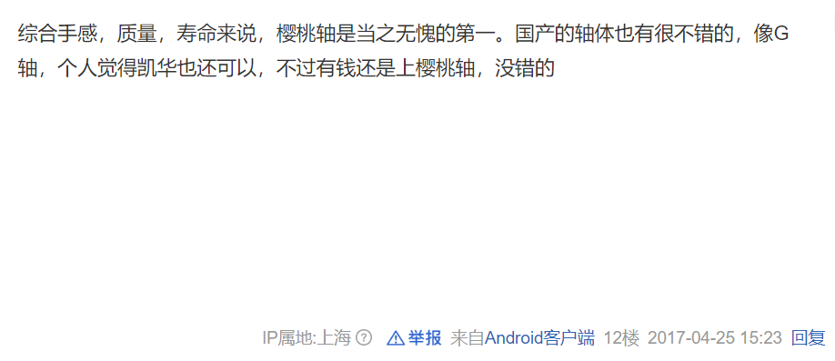 甚至有猛人提出,国产轴是否能够取代 Cherry 轴?