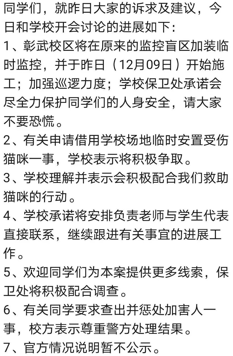 学校曾表示将积极争取,满足同学临时安置受伤猫咪的申请。实际也是不了了之没有下文。
