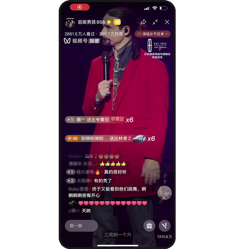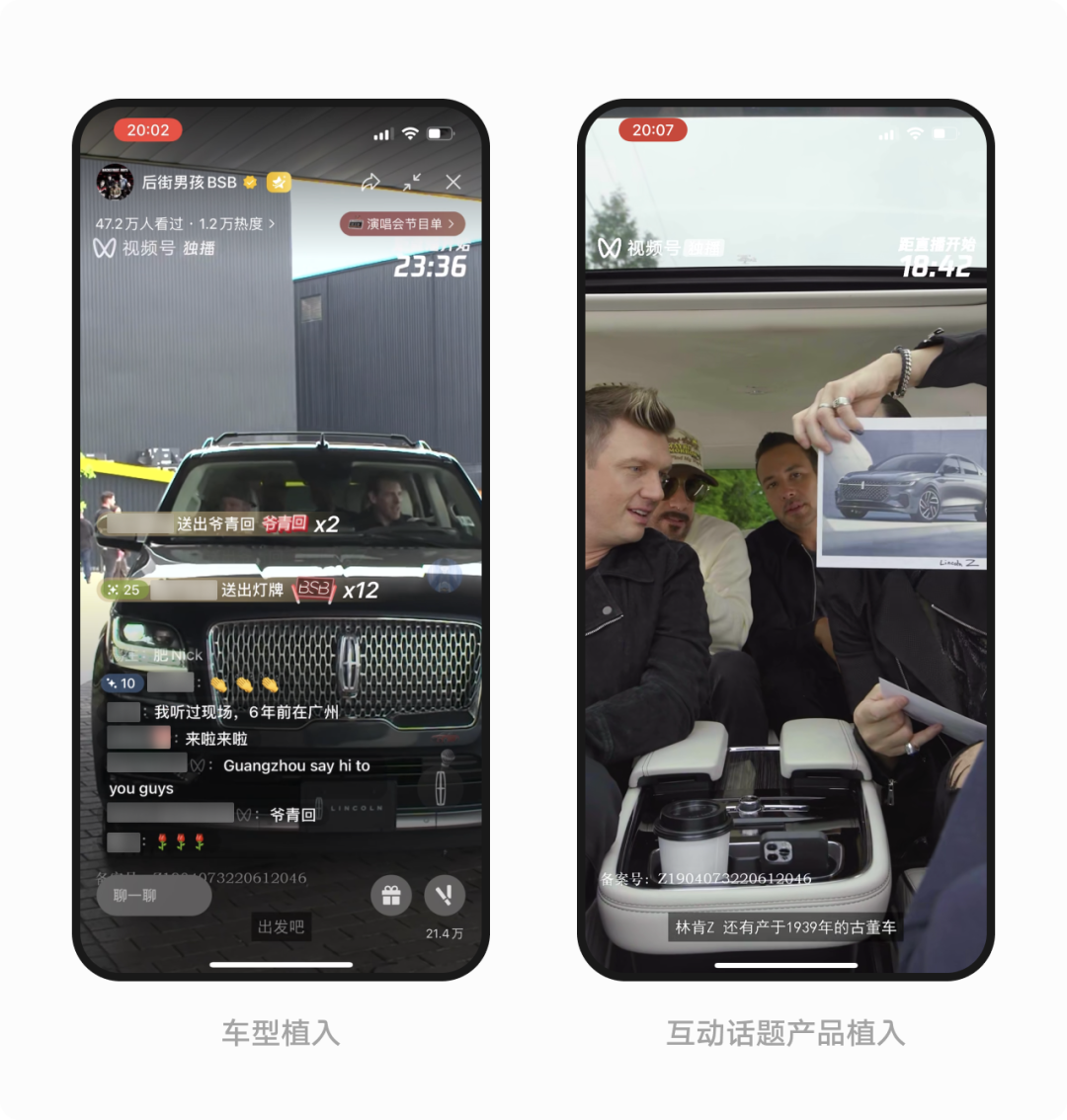 除了配合产品深度呈现外,艺人还通过更多元的方式为品牌发声造势。预热期,后街男孩在视频号宣布演唱会信息以及和西城男孩首次同台的预告内容中均 @ 冠名品牌,演唱会自带的话题效应聚集了用户的高关注,也带动了品牌高曝光。