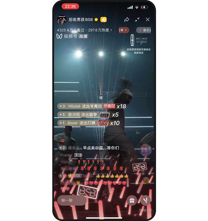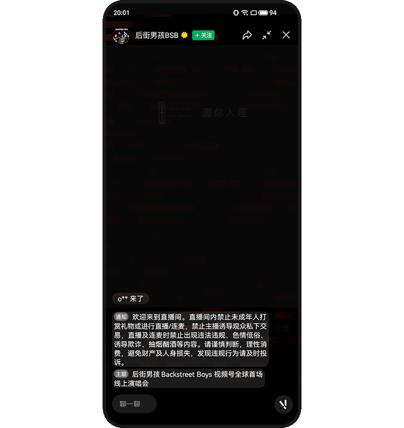 后街男孩演唱会延续了视频号一贯的高水准内容呈现,奥斯卡奖舞台制作班底、世界级舞美和灯光设计、竖屏模式和大量近景镜头带给观众“ VIP 席位”专属感。本场演唱会首次在用户进入直播间时增加了入场检票仪式动效,票根撕开后演唱会现场呈现眼前,为用户带来满满的仪式感和现场感。