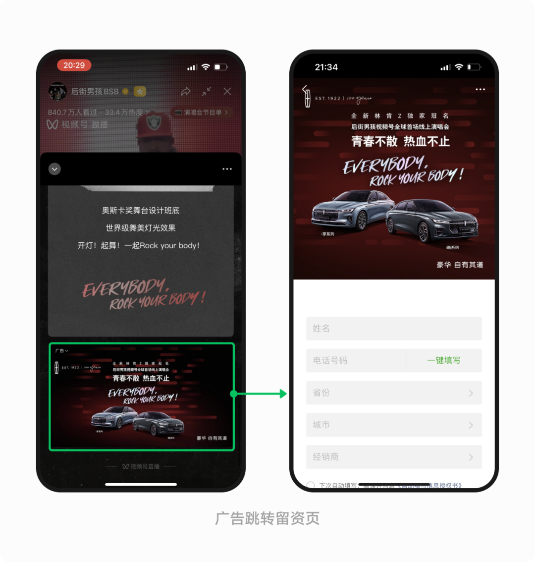 从崔健、罗大佑到后街男孩,视频号演唱会以高品质内容和沉浸式的现场体验,引发了万千用户的情感共鸣,结合深度产品植入和创新互动的营销玩法,帮助冠名品牌刷屏出圈。而在演唱会与微信生态打通的优势加持下,多元的后链路转化入口、演唱会 + 达人互选模式等又进一步将演唱会热度转化为品牌用户资产,助力品牌实现“曝光 - 心智 - 转化”全链路营销。