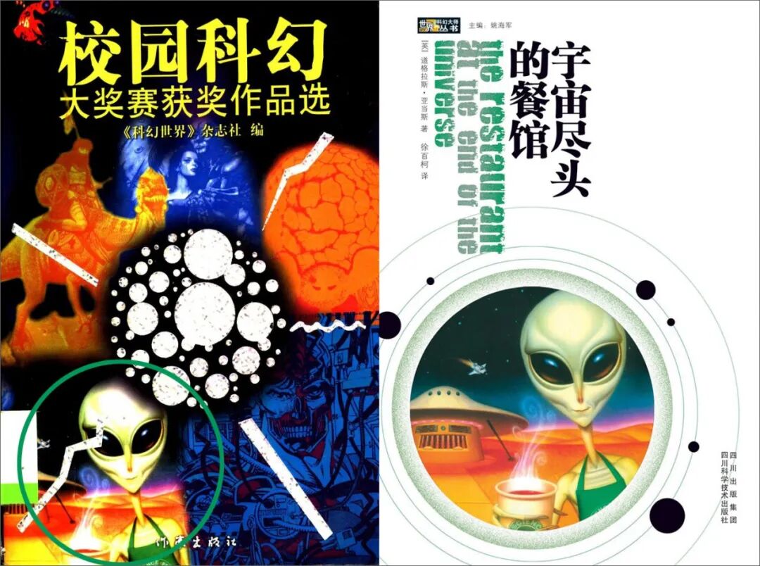 告别新世纪的前十年,人像荟萃封面迎来了新的高度。显而易见,人物的面容都精致了许多,但更让人欣喜的是,他们已不再是简单的虚化叠加,每一个封面都有其独特的创意点,甚至不乏幽默👇。《列奥纳多·达·芬奇传》 出版年:2018 这本书则是成功范例,尽显传主的神秘气质曾经,科幻小说的封面一直是P图“重灾区”,毕竟无论是人物(包括外星生物)、情节还是场景,都太容易产生画面感了。宇宙有多无边,想象力就有多没边儿。很多拿到《三体》的人都怀疑买到了盗版,至少从封面来看就是一本地摊读物。这样一部将中国科幻提升到世界级水平的作品,却没能将国内的封面设计提升到同等水准。后来的神作当年就是以这副面目与中文读者第一次见面的,当年愿意翻开的估计也只有科幻死忠了。出版于2001年的《校园科幻大赛获奖作品选》和出版于2005年的《宇宙尽头的餐馆》,出品方都是《科幻世界》杂志,时隔4年,喝咖啡的外星人终于在第二本的封面上成了唯一的主角。当然,完美继承了国内科幻小说封面设计精髓并青出于蓝的《三体》韩文版封面,必须拥有姓名。刘慈欣一直困惑《三体》为何在韩国只卖了400本(不是40000本,4000本,而是400本!!!),越想越怀疑人生,直到他看到了这个封面。《叫魂:1768年中国妖术大恐慌》 出版年:1999《叫魂》的封面就像一个字体使用大全,灰暗的背景烘托气氛,书名10个汉字+4个数字,一口气使用了5种字体(宋体、黑体、书法体一样不落),同时使用了描边、阴影、渐变、拉长、加宽、斜体等效果,使整个封面也像是被施了妖术一般。《叫魂》实际上是一部严肃的探讨历史问题的社会学著作,封面却比十大未解之谜还让人瑟瑟发抖。推理小说用惊悚的封面吸引读者倒是合情合理,但惊悚的程度却是个值得商榷的问题。《濒死之眼》的封面让人联想到《咒怨》,直到确认了咒怨的眼神,才发现前者甚至有点楚楚可怜。
