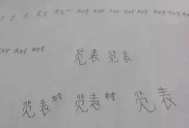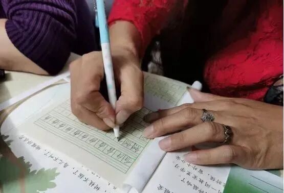 第一节课通常是写名字,张泽双发现很多学员连笔都没有握过,有一个学员紧紧用拳头圈住笔来写。她得握住她们的手,一笔一画地教他们,一个学员跟她说:“握一支笔比握锄头还辛苦。”她们在田字格上描名字,刚开始一个字要占四个格,占两格,要经过一段时间的练习,才能把字框到一个格子里。