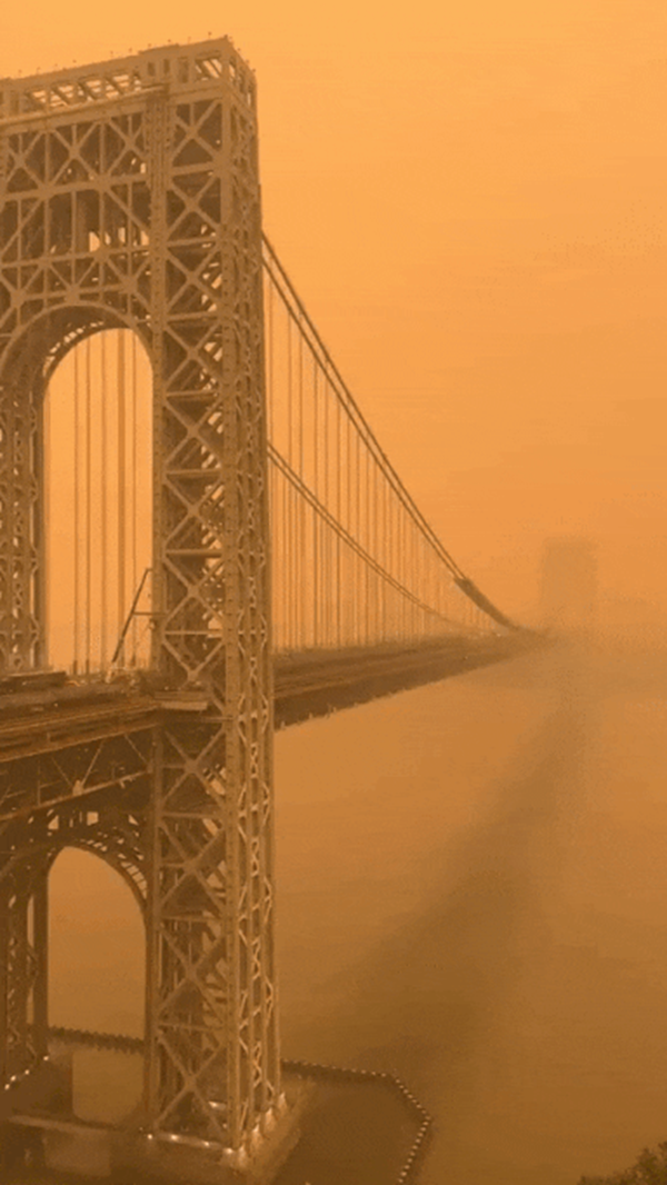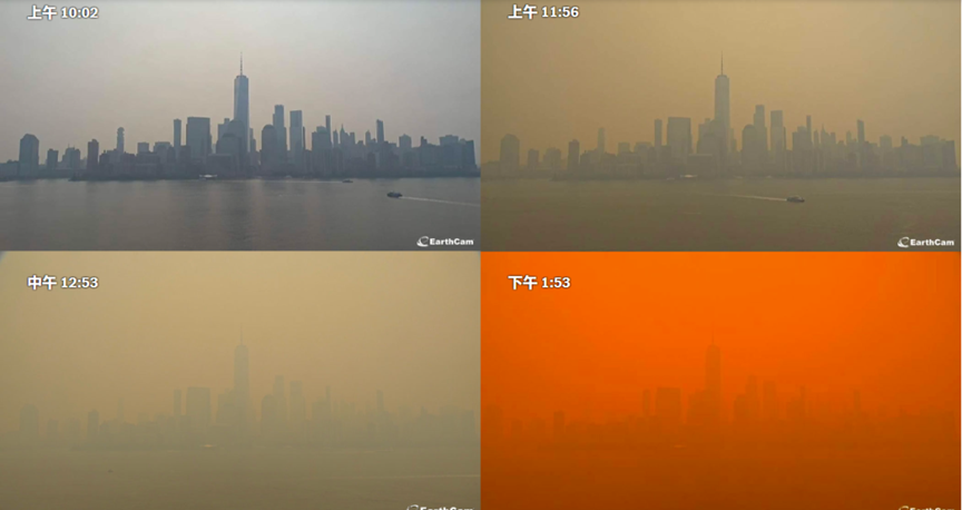 加拿大发生超大规模森林大火,毒烟粉尘南下飘往美国,纽约、华盛顿、费城等美东重要城市陷入“橙色恐怖”,飞机停航、学校停课、赛事取消,