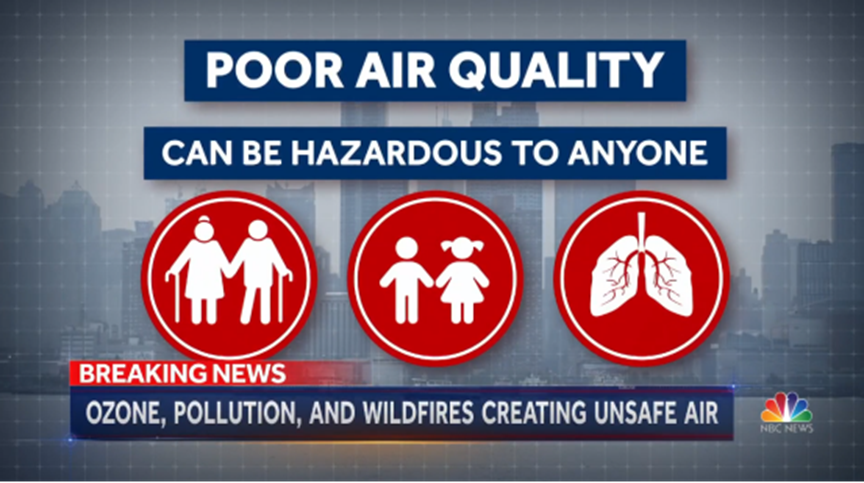 受加拿大超大规模森林大火造成的毒烟粉尘袭击,