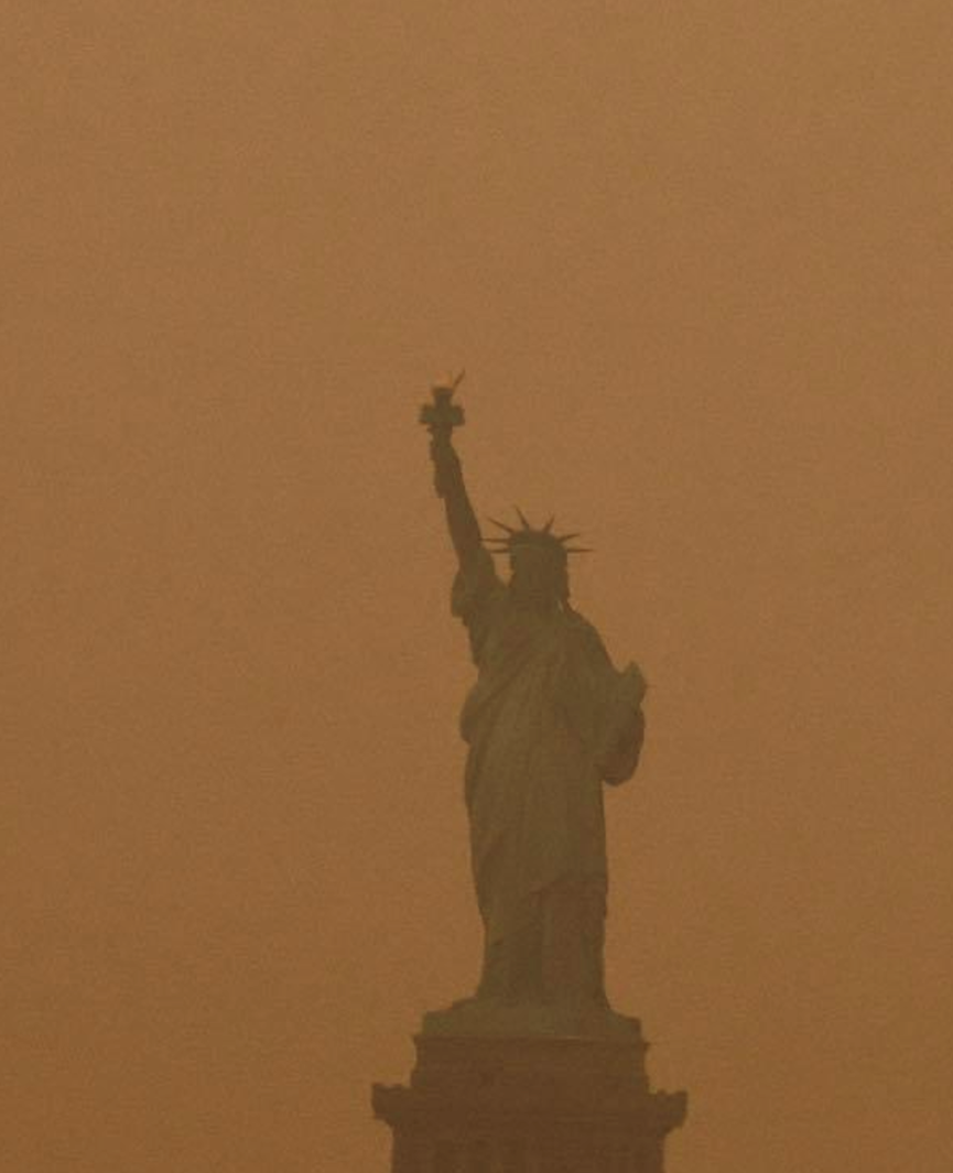 纽约都会区的两座机场甚至因空气质量影响能见度而停飞航班