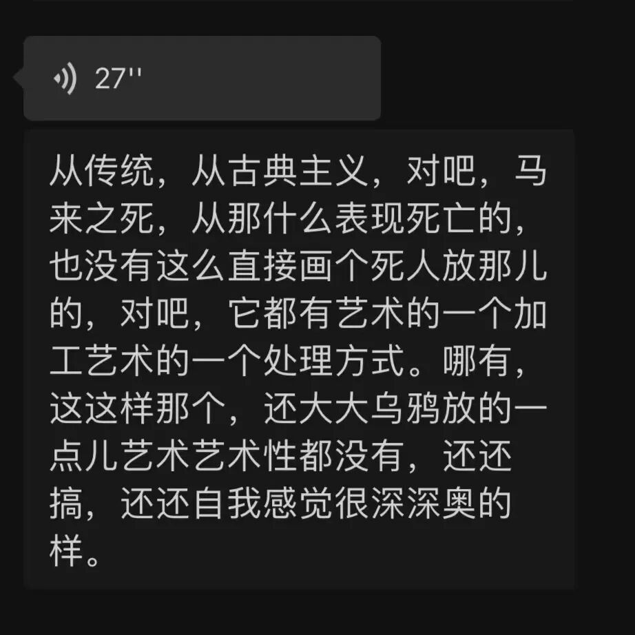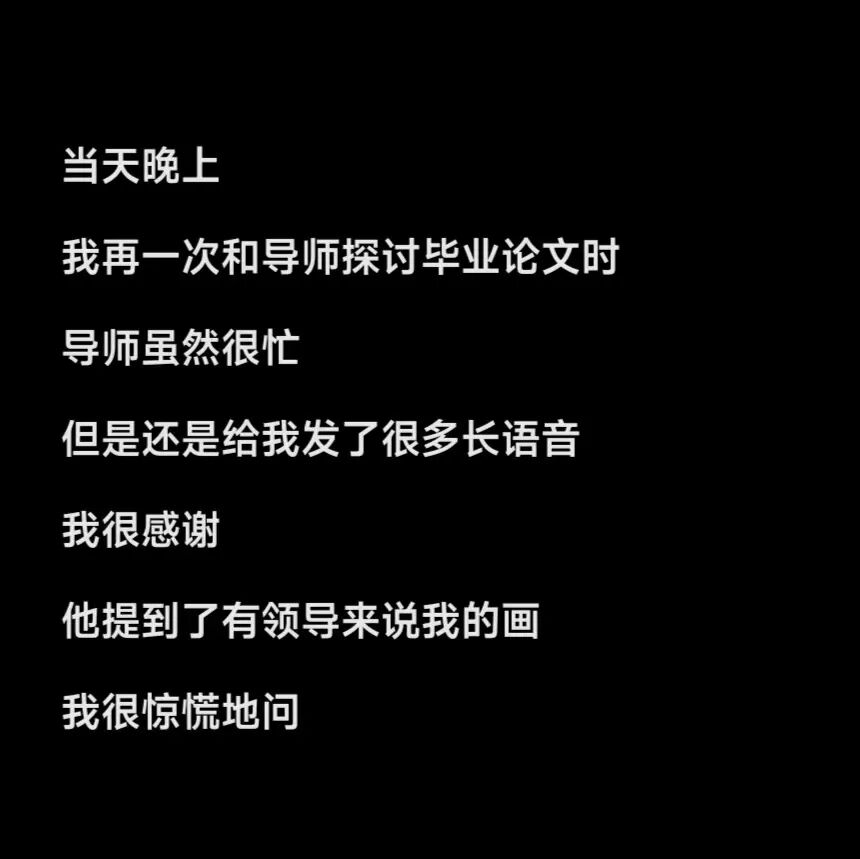 注:为了尽可能接近真实情况,我邀请了几位朋友帮我模拟了创作审查,这几位朋友的出身不同,也并非全部为艺术出身,这样是为了了解到不同角度的人对毕业创作的看法。