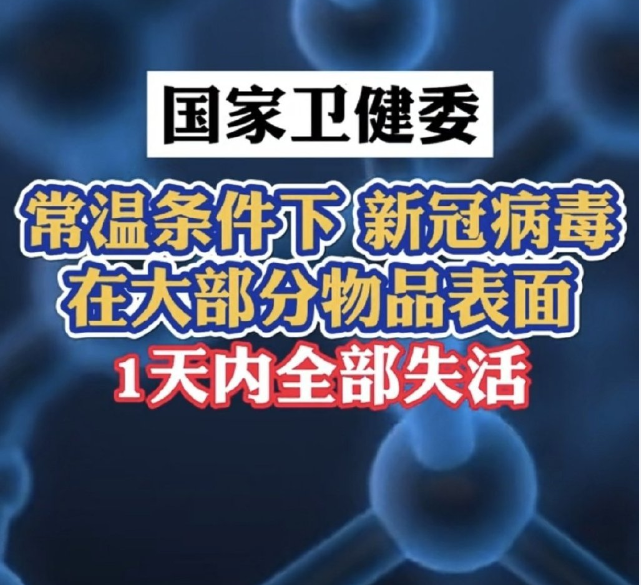 国家卫健委明确说了,新冠病毒在常温物体表面存活不超过1天,