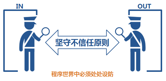 overly pessimistic(过于悲观),把和程序有关的一切请求、服务、接口、返回值、机器、框架、中间件等等都当做不可信的,步步为营、处处设防。HTML、CSS、JavaScript 这三种最基础的技术,而如今,网站的样式和交互越来越复杂,我们不得不使用一些知名的框架来提升开发效率,比如 Vue 和 React。JetBrains IDEA 或者 Vscode。很多刚开始写代码的同学、甚至是一些经验丰富的老手,都对开发工具保持绝对的信任。a,那编辑器界面上显示的一定是 a。GitHub 等开源项目平台上能够找到大量优秀的开源项目,好的开源项目甚至可以得到 10 万多个关注,那这些知名的开源项目可信么?Vue 项目,累积提出并关闭了 8000 多个问题。Tomcat,就遇到了 bug,每次接受到特定的请求都会报错。刚开始我根本没有怀疑是 Tomcat 的问题,而是绞尽脑汁地想自己的代码哪里写错了。后来经过反复的排查和搜索,终于确认了就是 Tomcat 本身的 bug!Maven 和 npm)搜索依赖库,然后使用包管理器,用一行命令或者编写配置文件就能够让其自动安装依赖,非常方便。JSON 序列化类库 fastjson,几乎无人不知、无人不晓,因为其极快的解析速度广受好评。但是,这个库被多次曝光存在高危漏洞,可以让攻击者远程执行命令!一般的开发者根本不会发现这点,从而给项目带来了极大的危害。Java 是一种强类型语言,具有健壮性。这句话我相信所有学过 Java 的同学都再熟悉不过了。但是,强类型编程语言就一定可信么?Java 而言,甚至还有一个专门记录 bug 的数据库!MySQL,也可以直接租用大公司的云数据库,那么数据库可信么?Redis、Memcached 等,可以自己在服务器搭建,也可以直接租用大公司提供的云缓存服务。qps(query per second 每秒查询数)还能达到预期么?接口返回时长真的不会超时么?Java 语言中,应该对所有可能为 NULL 的变量进行检查,防止 NPE(NULL Pointer Error 空指针异常),在开发多线程程序时,选用线程安全的 ConcurrentHashMap 而不是 HashMap 等等。还可以利用 Assert(断言)来保证程序运行中的变量值符合预期。Java 中,先用 try 捕获异常、再用 catch 处理异常、最后用 finally 释放资源和善后。参数类型校验:比如请求参数应该是 Integer 整型而不是 Long 长整数类型。