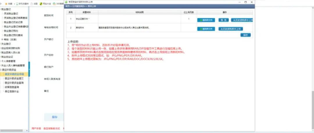 第五步:点击保存,保存成功之后,显示附件上传页面。