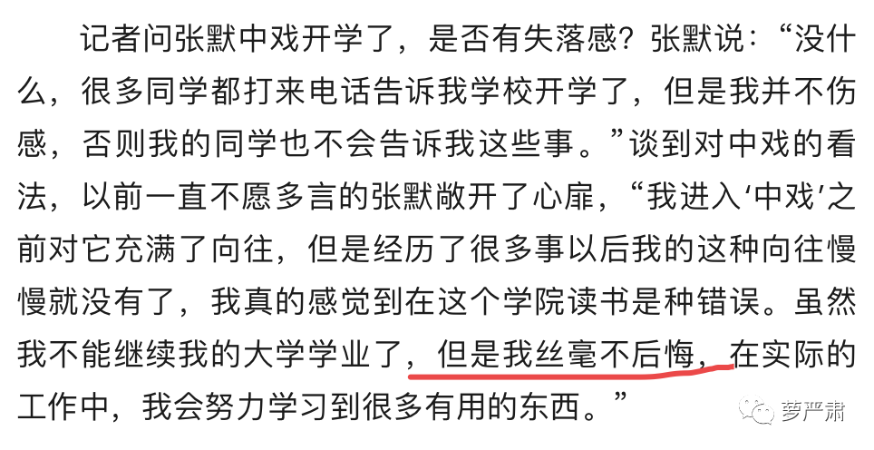 殴打女性后不到一个月,他接受采访说,没想到中戏竟然把殴打事件处理得这么严重,中戏就是为了掩饰真相!——他口中所谓的“严重”,就是开除。