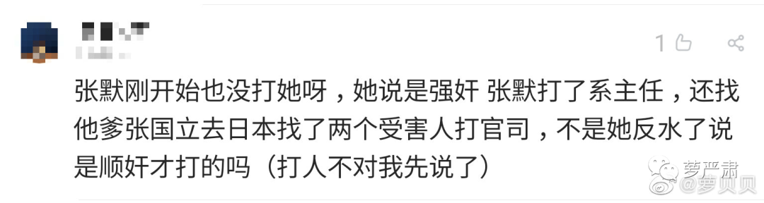 现在找出千般理由去体谅张默为什么打人的网友,如果有如此旺盛的共情能力,可以设身处地想想:一个一米八三的21岁成年男子,用力甩女性一个耳光,都是难以磨灭的心理阴影;而在张默2003年年底暴力殴打的事件中,被施加暴力的女性,是被殴打、一路拖行、最后打到失去了意识,被打后一周眼球内都有淤血、鼻骨骨折。