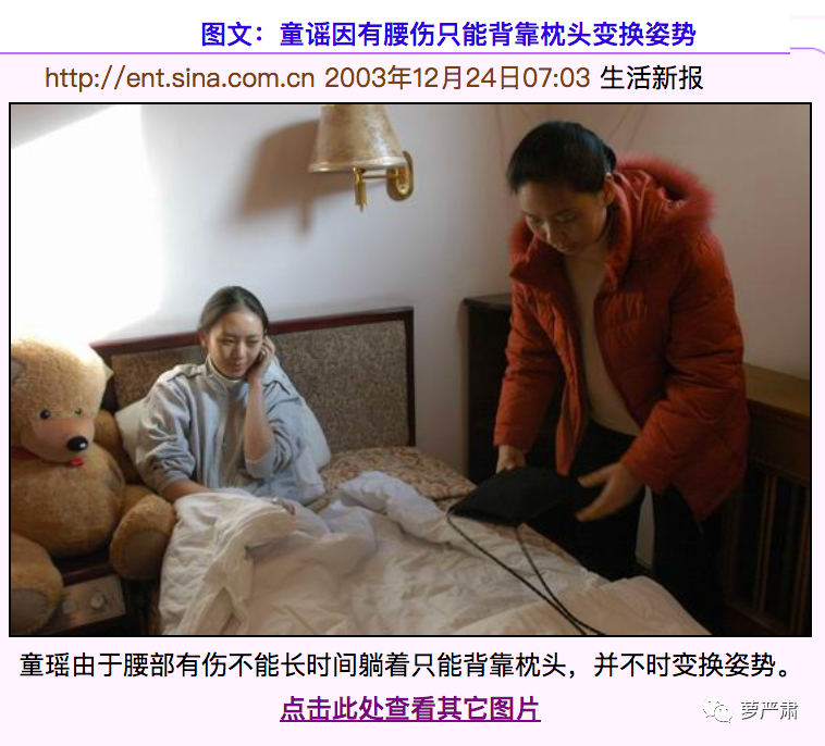童瑶是卧床进行采访,右腰常有疼痛。