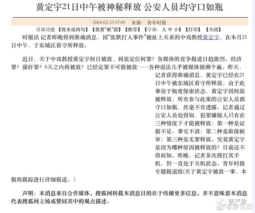 事实:黄定宇在2004年2月就被释放,检方因“证据不足”而不予批准逮捕,这案子根本没开庭,何来“当庭”反水?大家为什么脑补了一个法庭上的反转戏码?