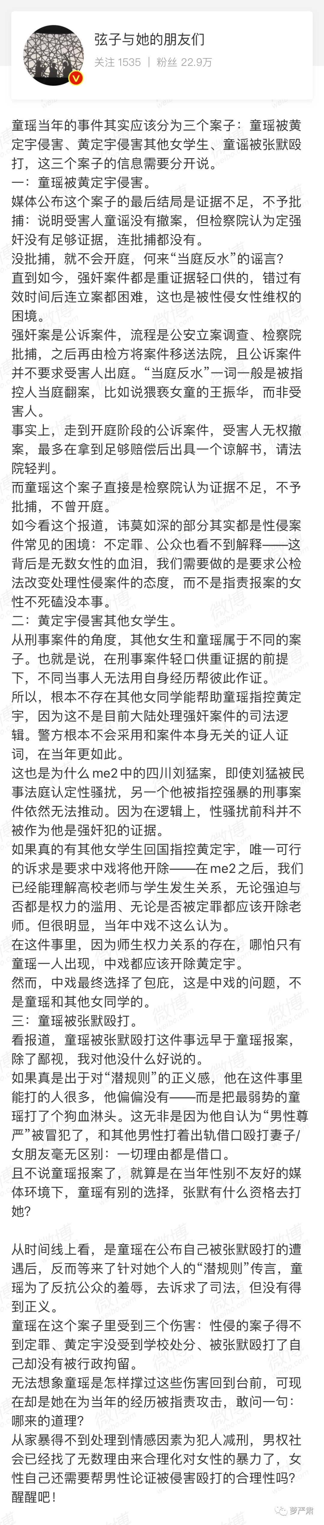 而且,我实在不明白网传“童瑶翻供害了另外两个女证人”这种说法的逻辑是什么,以为站出来指控性侵是凑团购吗?是凑三个口供才能立案,还是凑三个口供就直接判刑?讲点法律好吗?