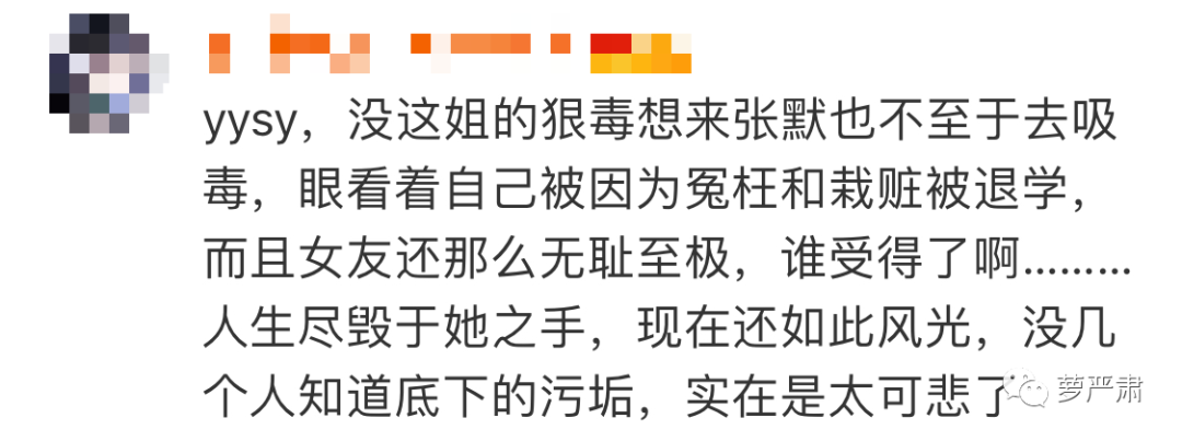 “没有这姐的狠毒,想来张默也不至于去吸毒。”