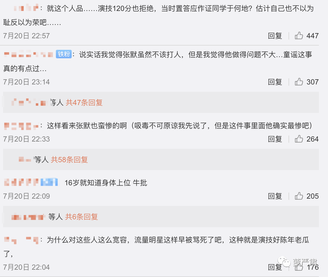 暴力殴打女性,对张默的事业没有影响;他真正糊掉是因为两次吸毒被抓。还有网友去体谅张默,说他受了童瑶刺激才吸毒,这是怎么想的,动手打人的可是他啊?他还受刺激了?