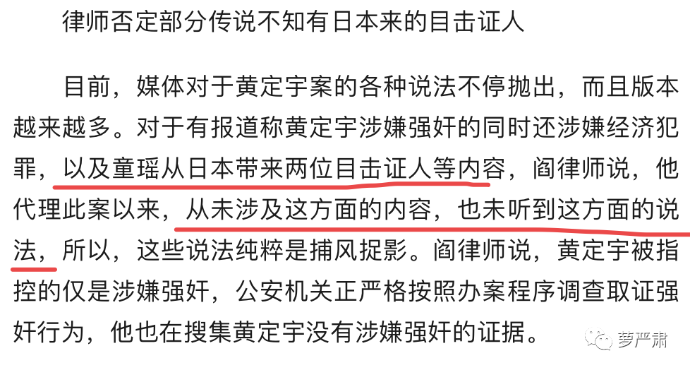 而另外一则报道里,黄定宇的辩护律师说,不涉及“日本回来的证人”。(而且在这则报道里写的也是“童瑶从日本带来两位目击证人”,不是什么“张国立从日本找来的”。)——有没有“日本来的证人”这件事,都要打个问号。
