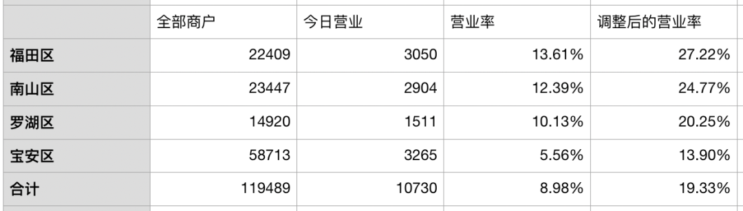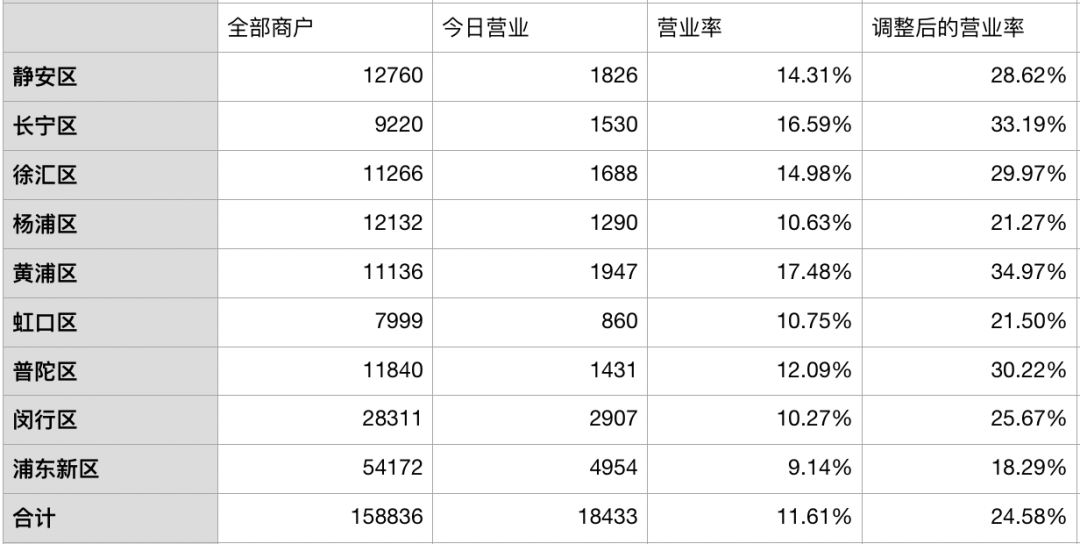 得出的结论是,上海的餐饮商户开业率达到了25%,而深圳则也只有19.3%。