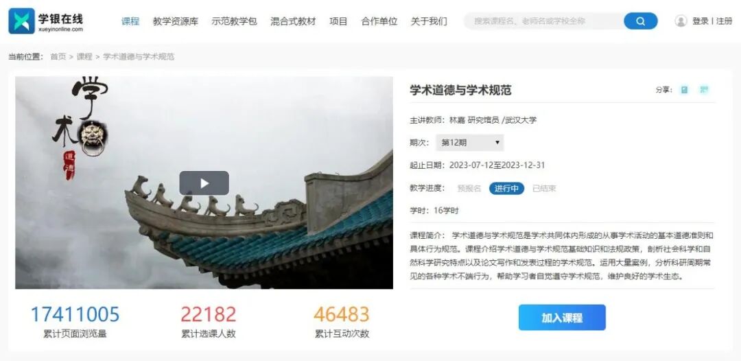 主讲《学术道德与学术规范》慕课,每年逾万人选课,获全国教学案例一等奖、省级一流本科课程、武汉大学优秀教学业绩奖。