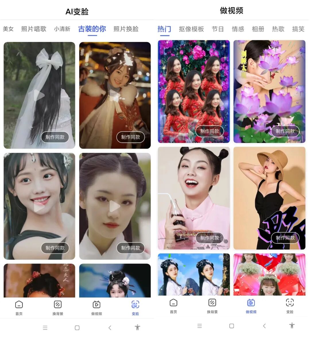 到除了对图片进行处理以外,还能对视频进行编辑。内置了很多好看的视频,你可以添加自己头的照片,生成属于自己的视频。用来发朋友圈真的逼格满满的~当然这个功能,就不要拿去做其它用途了