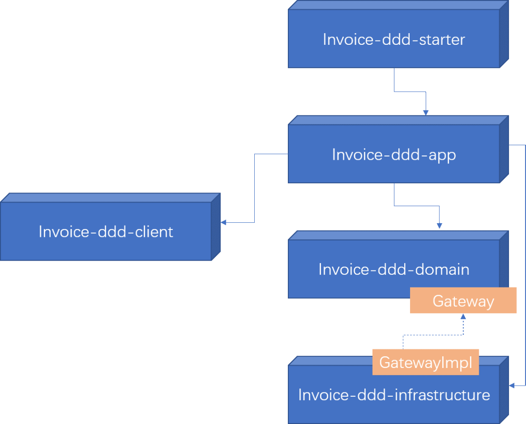 结合上述四层模型,在实际代码工程的构建过程中,我们也是参考了COLA架构进行构建,具体如下: