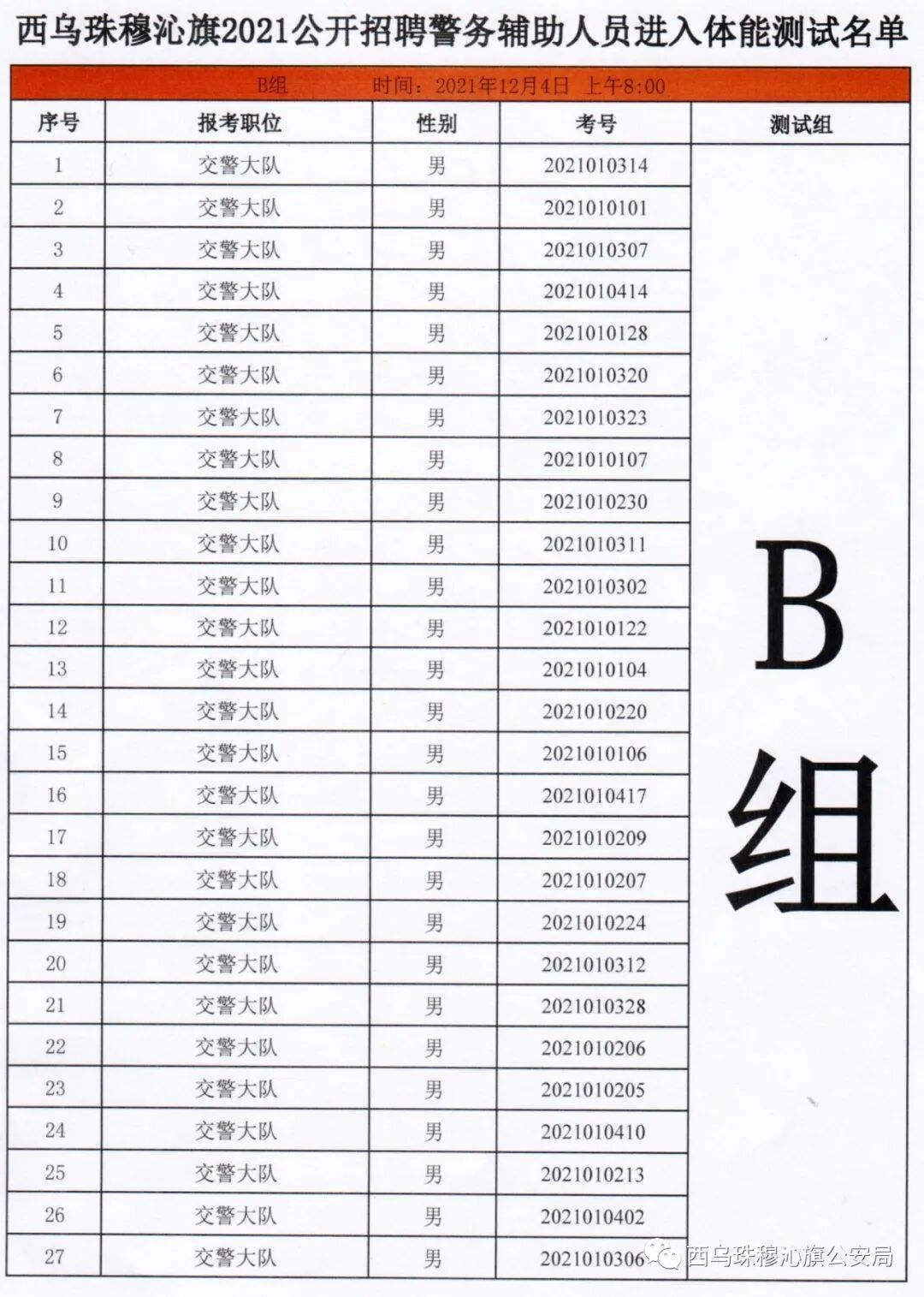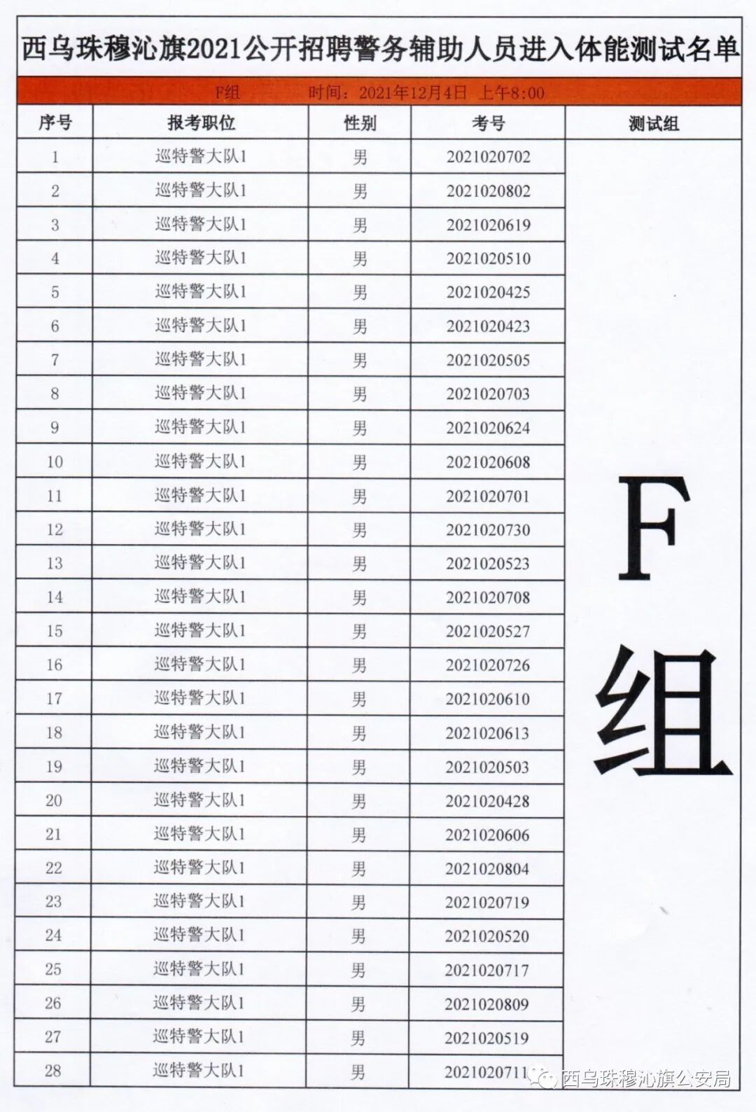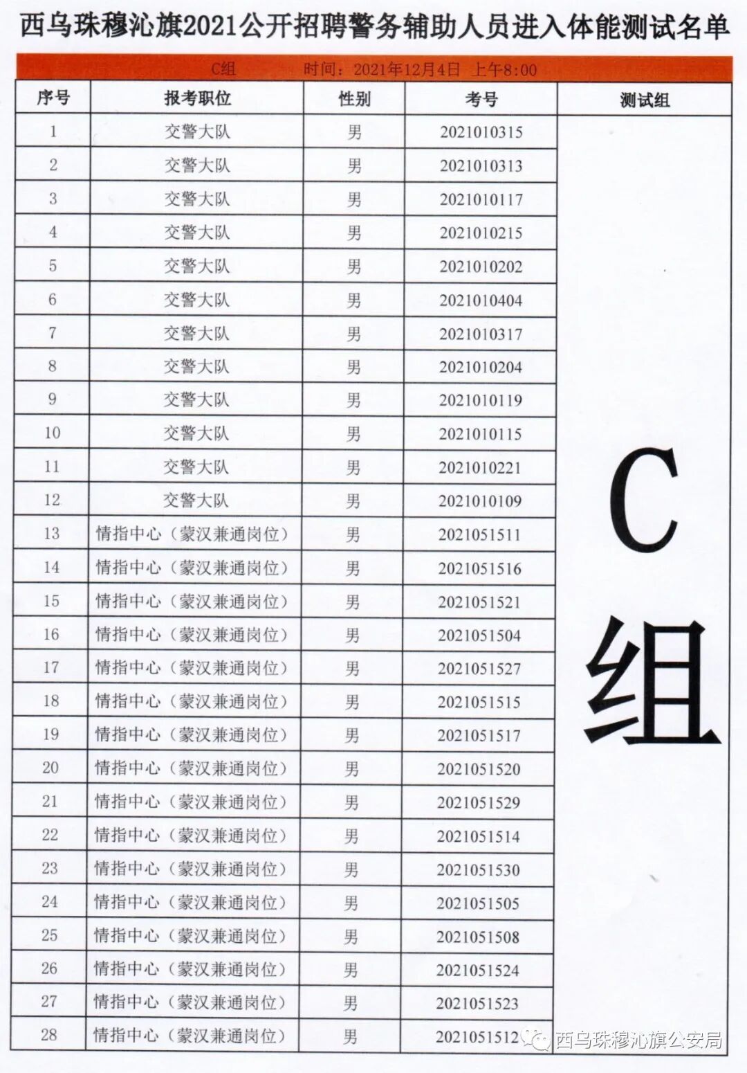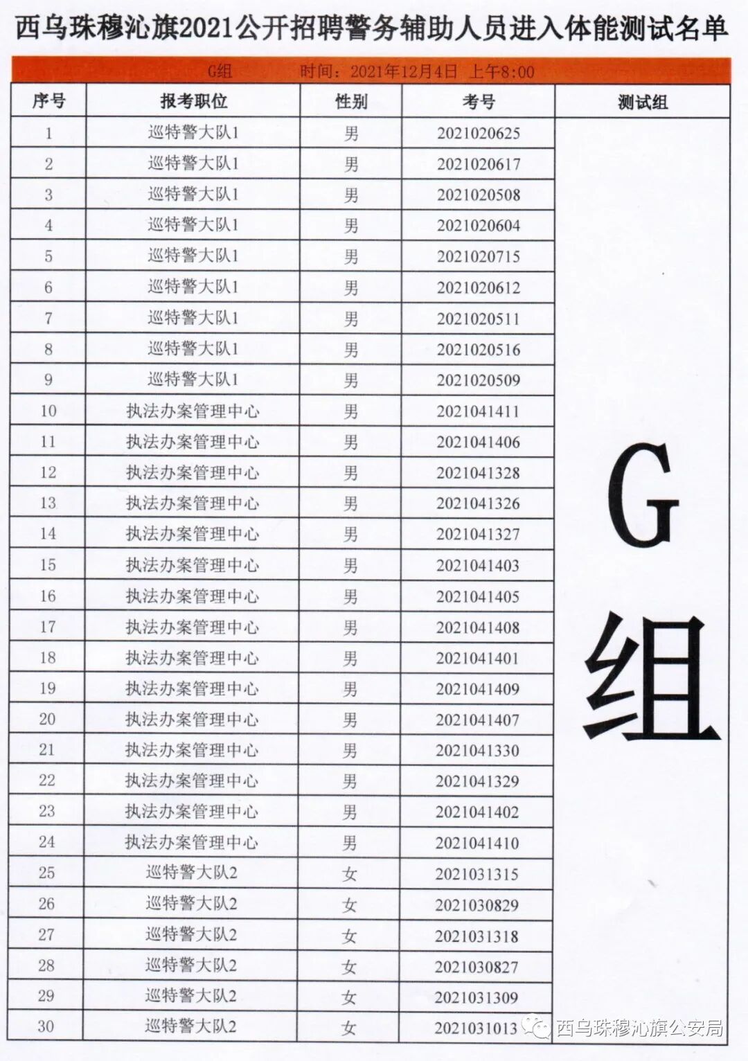 按照西乌珠穆沁旗2021公开招聘警务辅助人员招聘工作计划安排,前期,组织开展了考生资格复审工作,现将进入体能测试环节人员名单进行公示,并将体能测试相关事宜公告如下: