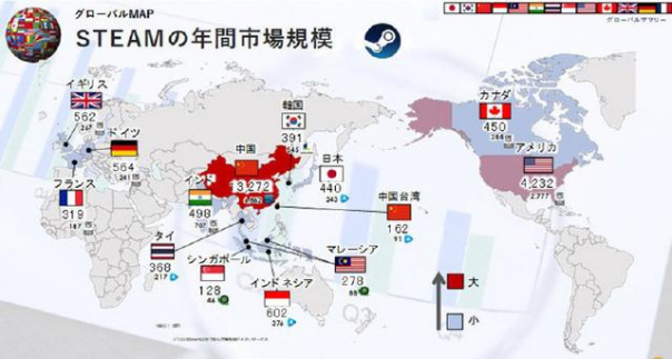 今年恢复发放版号的那几天,日本研究机构Game Age Research Institute发布了一个调查报告,里面说全球最大的游戏平台Steam去年从中国卷走了: