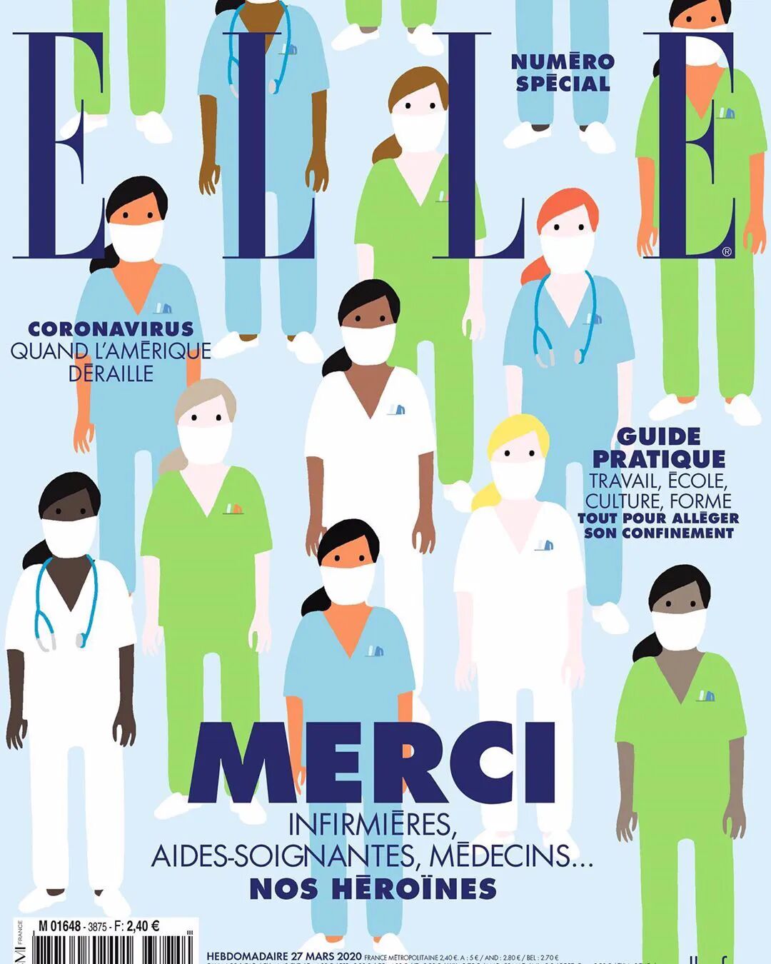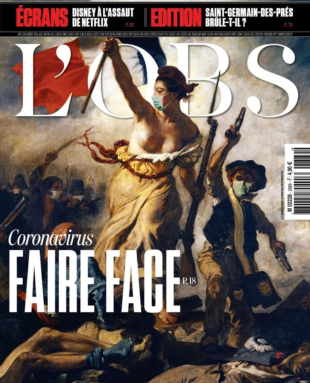 法国《L'OBS》杂志将《自由引导人民》戴上口罩,同样以名画作为创意的还有伊朗《Prestige》杂志。