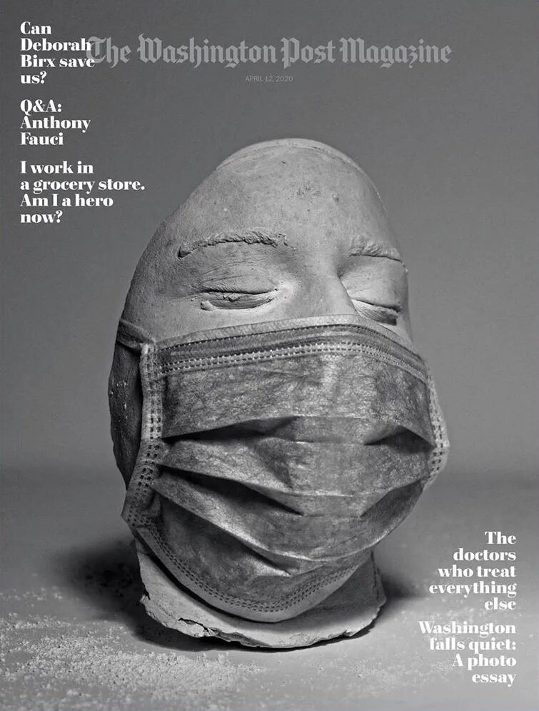 美国《The Washington Post Magazine》的封面同样是戴着口罩的艺术品,编辑写道: