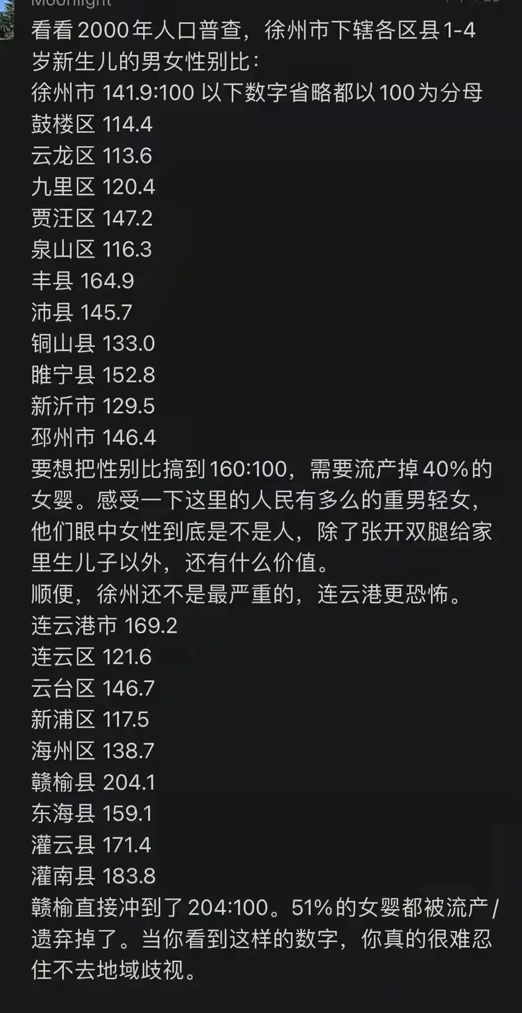 怪不得丰县2000年人口普查性别比高达164.9,怪不得徐州在1986年到1989年三年拐卖妇女多达48100人(《古老的罪恶》),这样的领导素质,这样的文化氛围,这里发生什么怪事都不奇怪了。