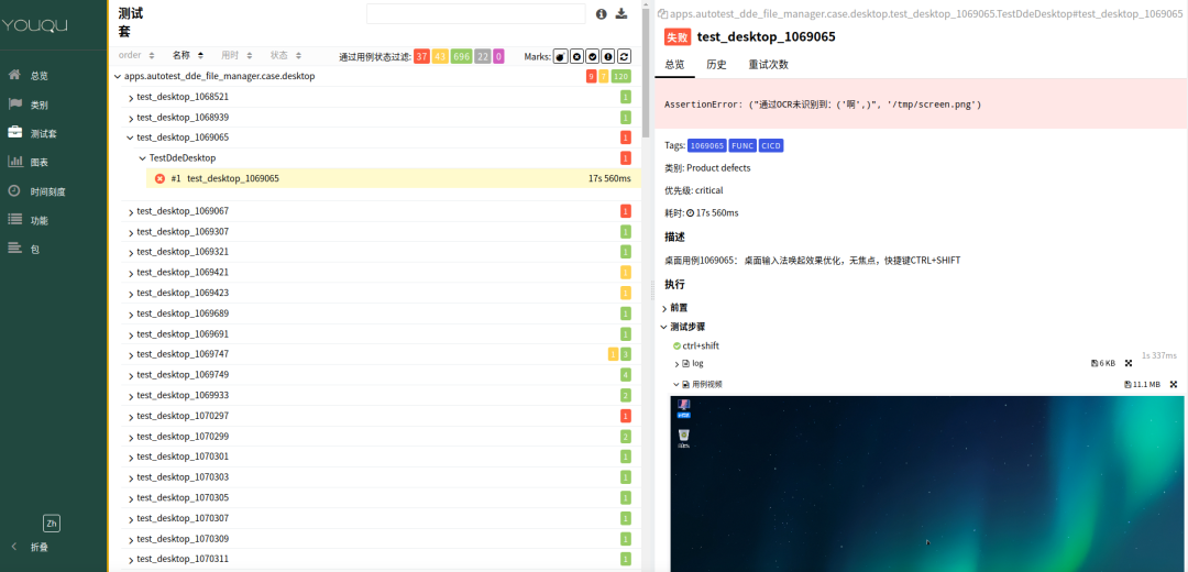 YouQu框架已深度融入公司日常运营,成功应用于数十项组件与系统的例行测试与持续集成流程之中,覆盖领域广泛,包括但不限于高度复杂性的系统级应用组件如文件管理器、DDE及窗口管理器等。该框架展现出卓越的稳定性和高效性,持续稳定地实现月均五万条测试用例的无人值守自动化执行,确保了测试工作的高效性与精确度。