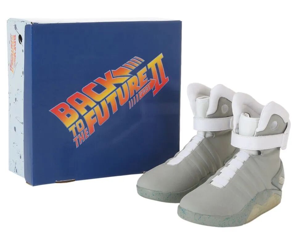 第二部中,Marty来到2015年,得到了一双会自动系带的Nike鞋,踩着它在喷气滑板上飞驰。