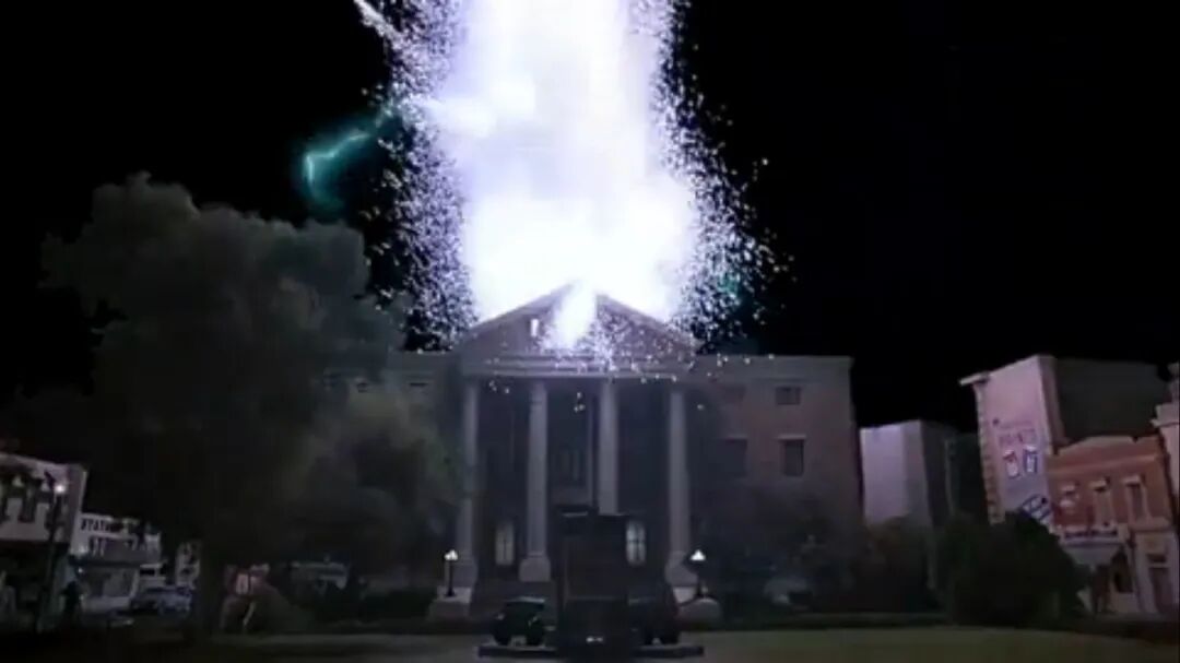 有一次因为车子动力不足,主角不得不爬到钟楼上去引闪电,贡献了影史上最牛逼的一道亿万伏特电击。