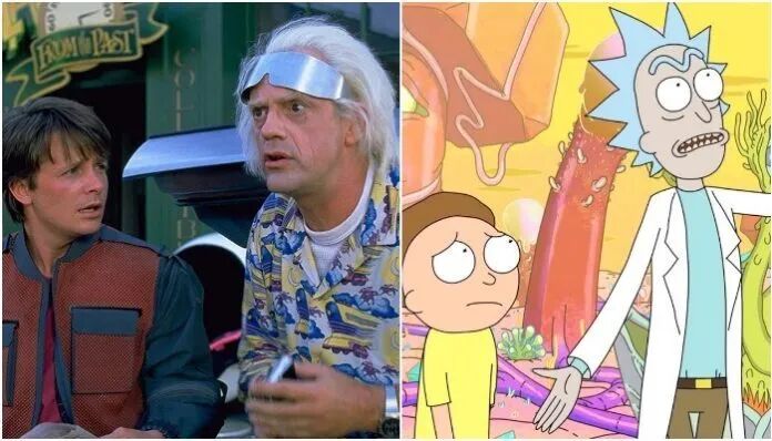 Rick & Morty里的爷孙形象,就是在致敬《回到未来》里的经典老少配。