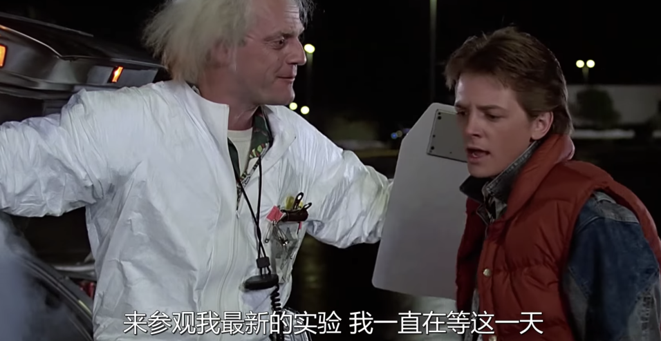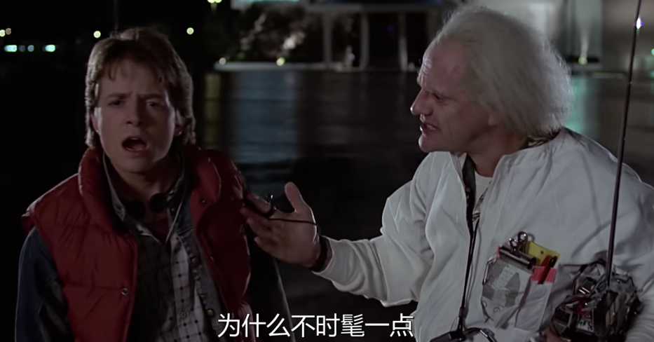 这个长得像神经质爱因斯坦的老头,搞出了一台时间机器,让Marty回到了30年前——1955年,遇到了年轻的父母,改写了历史,捅出了一系列闹剧。