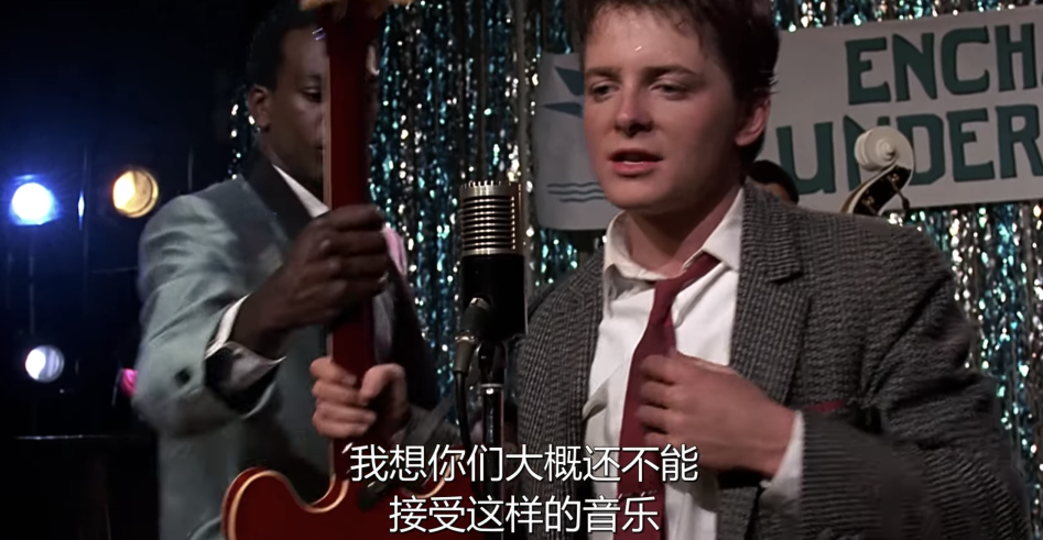 果然,Marty回到1955年,阴差阳错地启发摇滚乐之父Chuck Berry发明了摇滚乐。