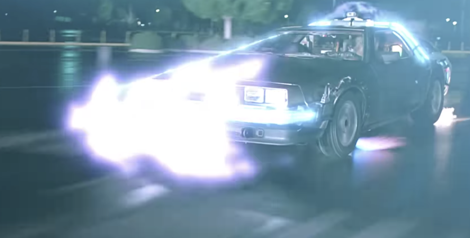 只要时速达到88英里,就能在一瞬间穿越,在地上留下两道炫酷的燃烧轨迹。