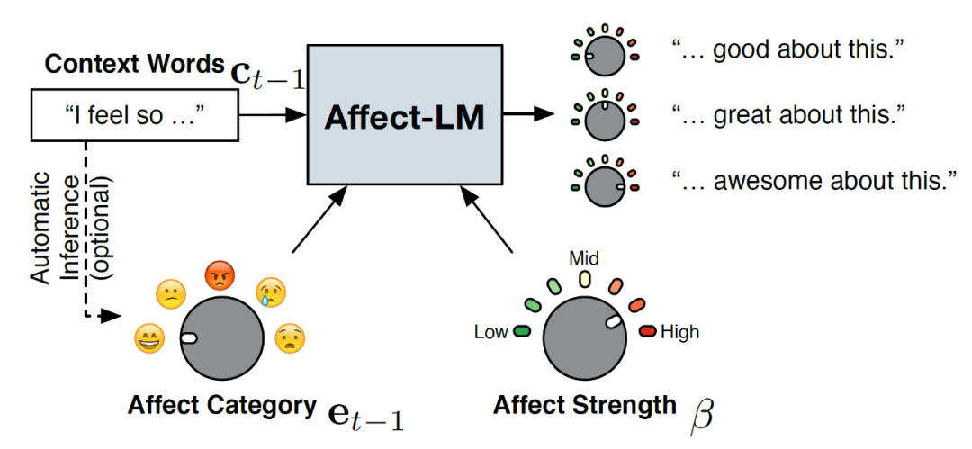 [22]S. Ghosh, M. Chollet, E. Laksana, L.-P. Morency, and S. Scherer. Affect-LM: A Neural Language Model for Customizable Affective Text Generation. ACL. 2017.