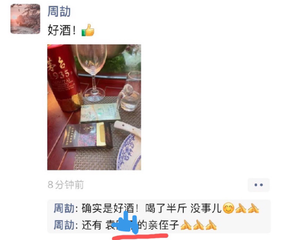 还有这张,在茅台名酒图片的下面附上的那个评论,到底说的是谁的亲侄子呢?虽然打码了,但是相信很多网友肯定很好奇: