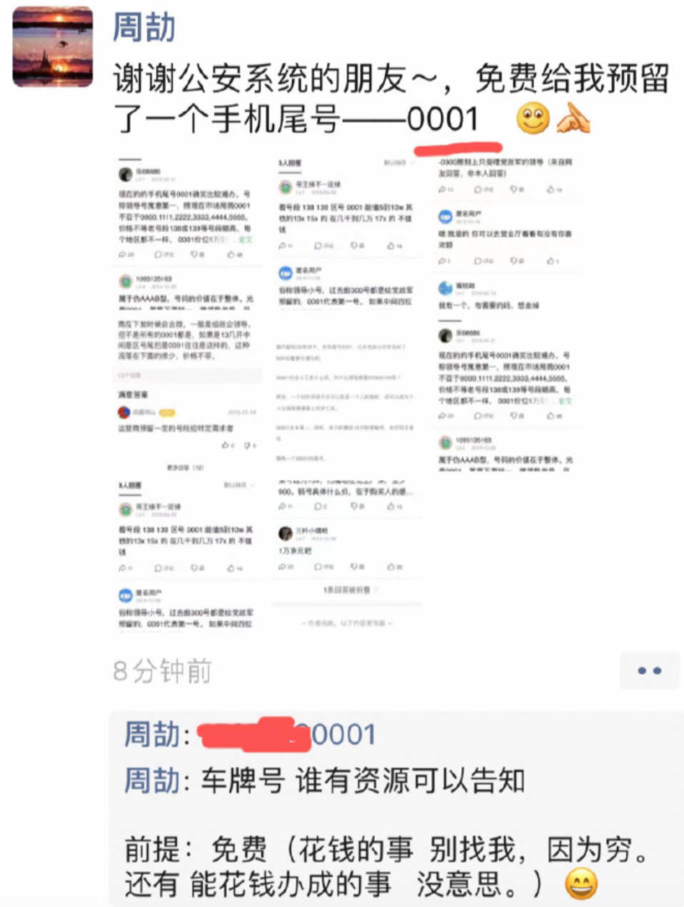 而且在周劼的朋友圈中,涉及到的单位非常多,甚至连车牌号手机号都能免费拿到,这种事情,一家国企能去核实吗?